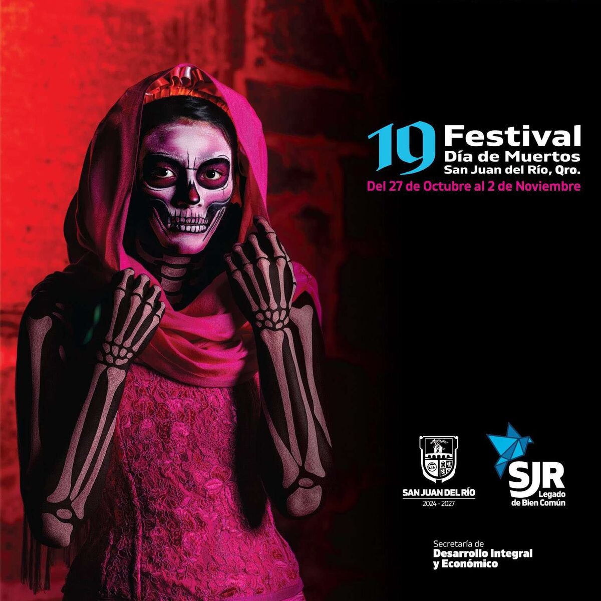 SAN JUAN DEL RÍO, QRO., 8 octubre 2025.- El gobierno municipal de San Juan del Río anunció la decimonovena edición del “Festival Día de Muertos”, que se celebrará del lunes 27 de octubre al domingo 2 de noviembre con un programa ampliado a siete días y 45 eventos. El alcalde Roberto Cabrera Valencia informó que se espera la asistencia de 55 mil personas y una derrama económica de 14 millones de pesos, buscando con ello impulsar el turismo y la economía local.