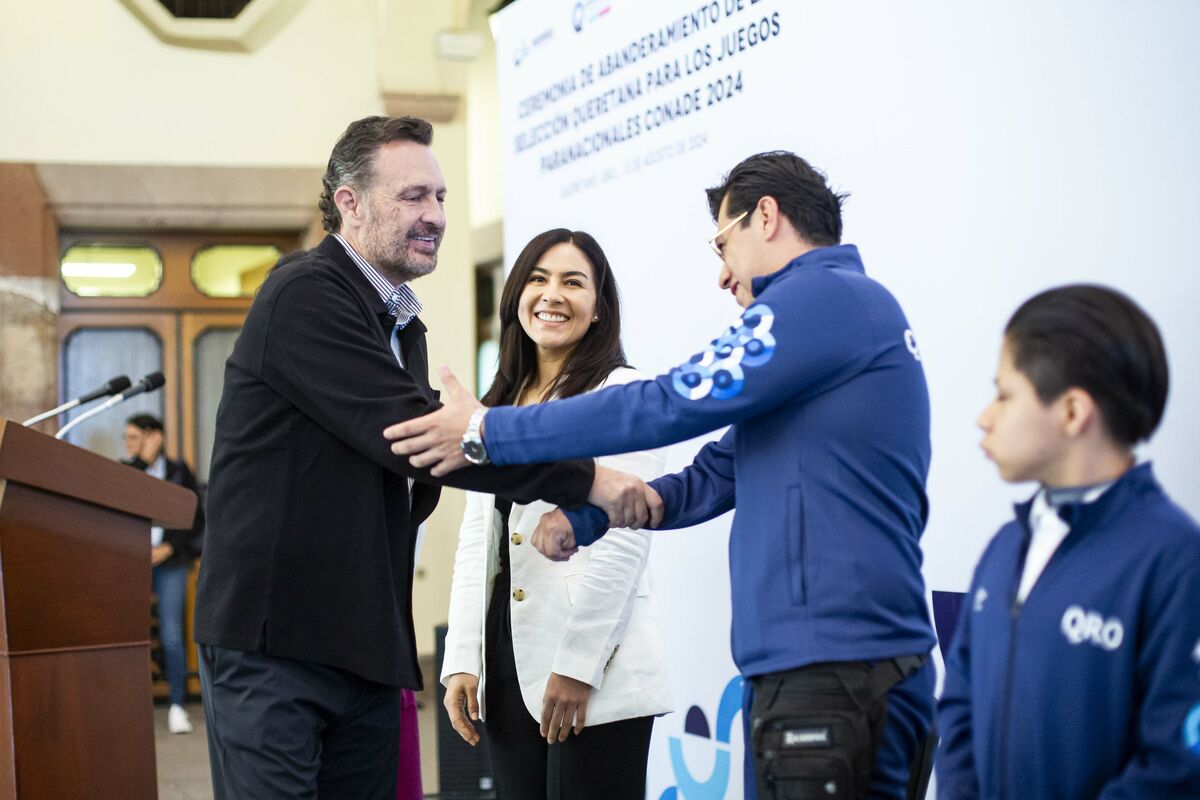 Querétaro, Qro. a 13 agosto 2024.- El gobernador de Querétaro, Mauricio Kuri González, abanderó a los 130 atletas que representarán al estado en los Juegos Paranacionales de la CONADE 2024 en Oaxaca, del 18 de septiembre.