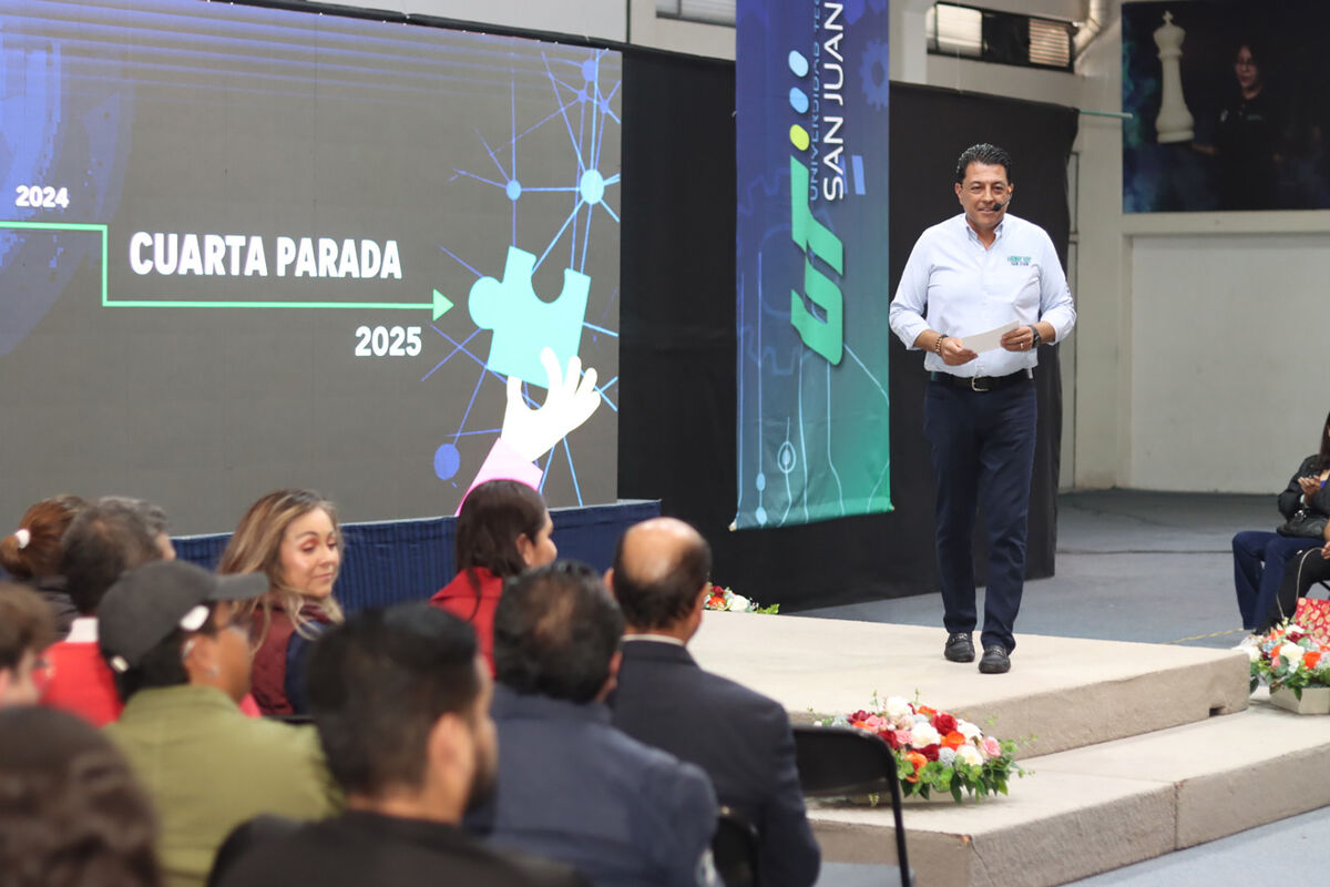 SAN JUAN DEL RÍO, QRO., 11 diciembre 2025.- En 2025, la Universidad Tecnológica de San Juan del Río (UT San Juan) se consolidó como la institución de educación superior con mayor matrícula en el municipio, al alcanzar tres mil 546 estudiantes inscritos; así lo destacó durante el rector Fernando Ferrusca Ortiz, ante la comunidad escolar y representantes de diversos sectores sociales, subrayando la importancia del trabajo colaborativo.