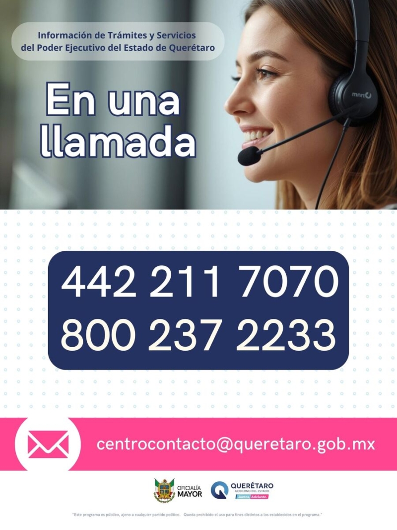 Querétaro, Qro. a 9 enero 2026.- La Oficialía Mayor del Estado de Querétaro informó que el Call Center del Poder Ejecutivo se mantiene como una herramienta clave para agilizar los trámites de la ciudadanía durante este inicio de año. Con líneas directas para las 19 secretarías estatales, el centro de contacto ha logrado atender a más de 10 mil 800 personas en lo que va de enero, respondiendo principalmente a dudas sobre el Programa de Apoyo a la Tenencia y los descuentos en multas de verificación.