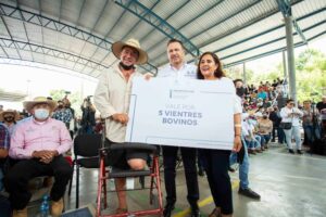 “Cada vez que se le apoya a una persona y que lo hacemos en conjunto para que tengan un tractor (…) es para trabajar, es para que tengan herramientas, para que puedan sacar adelante a su familia, por eso lo único que me queda decirles es gracias a todas y a todos aquellos que se la rifan de sol a sol, literal, para trabajar y sacar adelante, no solamente a sus familias, sino también para darle de comer a las zonas metropolitanas”, manifestó.