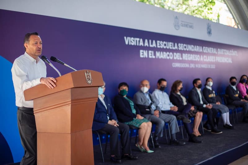Es seguro regresar a las aulas tras dos años de pandemia, afirmó el gobernador, Mauricio Kuri González, al visitar la escuela Secundaria General Quetzalcóatl, en el municipio de Corregidora, en el marco del regreso a clases presenciales en la entidad.
