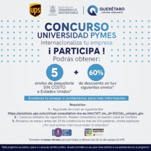 La Secretaría de Desarrollo Sustentable (SEDESU), junto con UPS México, hacen un llamado a las Pequeñas y Medianas Empresas que se han abierto camino en la cadena de suministro, para participar en el concurso “Universidad de PyMEs Querétaro”.