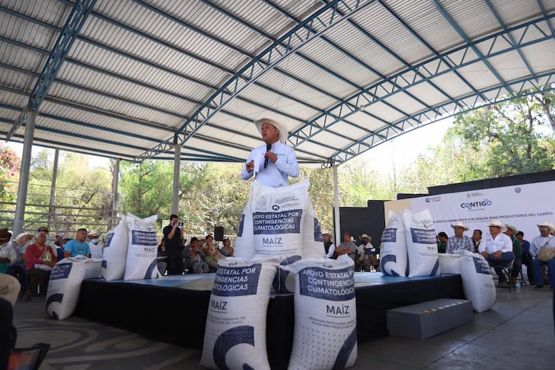 El secretario de Desarrollo Agropecuario, Rosendo Anaya, encabezó en el municipio de Jalpan de Serra la entrega de 57 toneladas de maíz, como apoyo emergente a 209 productores, quienes sufrieron afectaciones en una superficie de 380 hectáreas en la Sierra Gorda de nuestro estado.