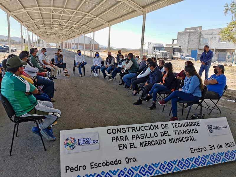 El presidente municipal de Pedro Escobedo, Amarildo Bárcenas Reséndiz, llevó a cabo la inauguración del arcotecho en el tianguis dominical del Municipio de Pedro Escobedo, donde estuvo acompañado de la Diputada Federal, SONIA ROCHA; Santiago de La Garza, en representación de Memo Vega, diputado local; Presidenta del Sistema DIF Municipal Pedro Escobedo, Araceli Olvera Reyes; Ramses Martínez, Comisariado Ejidal; Regidores del H. Ayuntamiento y presidentes de las distintas organizaciones de comerciantes del Municipio de Pedro Escobedo.