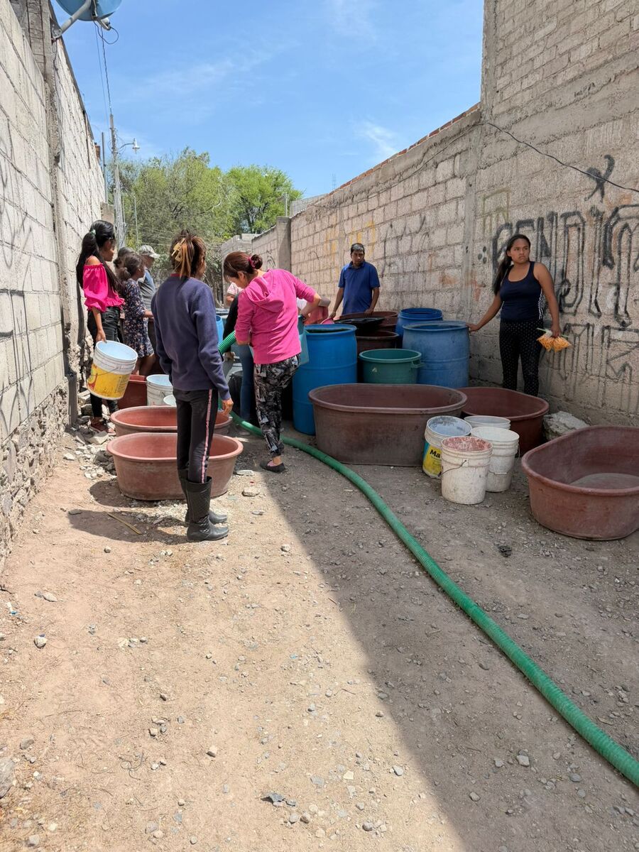 Desde el pasado miércoles 10, personal del municipio realiza la entrega gratuita de agua casa por casa en distintas calles de la comunidad, con el objetivo de garantizar que ninguna familia se quede sin acceso a este servicio básico mientras se resuelve la contingencia.