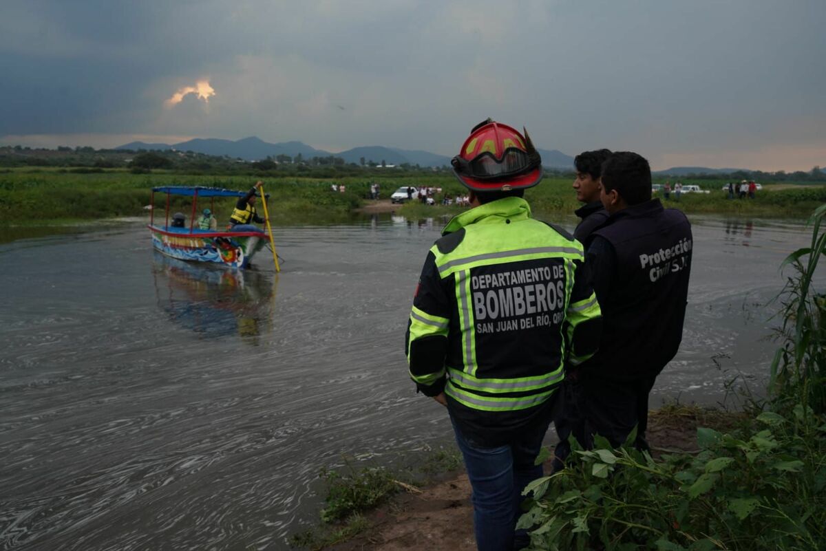 Elementos de Protección Civil Estatal y Municipal, Seguridad Pública, Bomberos de San Juan del Río, Bomberos Querétaro y Tequisquiapan continúan las labores de búsqueda en el cuerpo de agua.