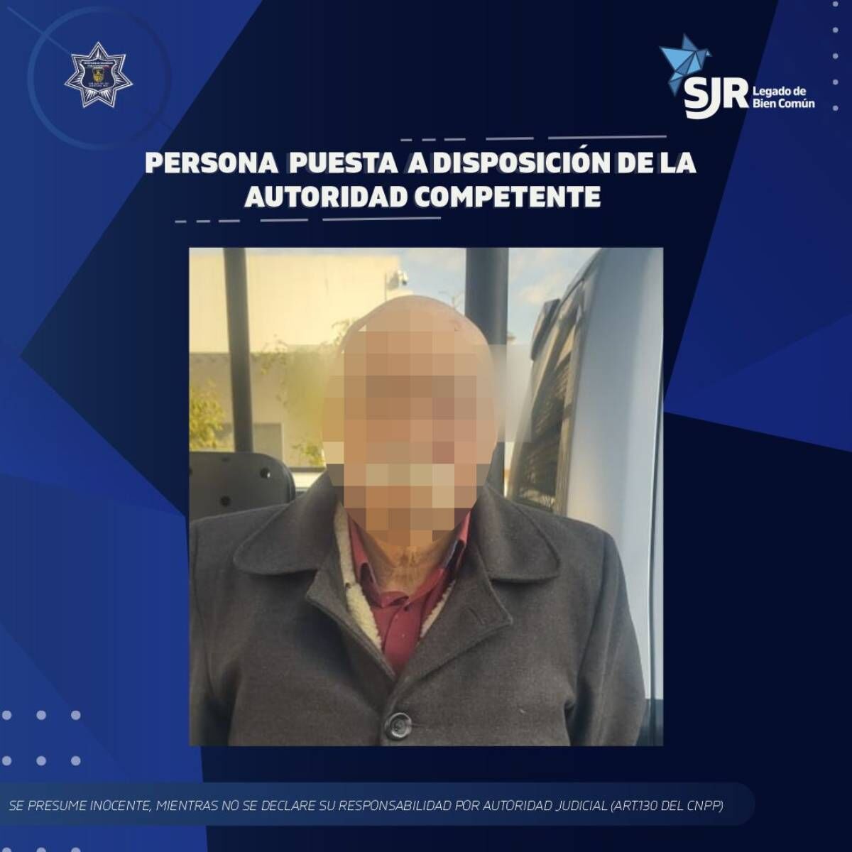 SAN JUAN DEL RÍO, QRO., 15 enero 2026.- Elementos de la Secretaría de Seguridad Pública Municipal (SSPM) concretaron la detención de un hombre de la tercera edad, de oficio taxista, quien fue señalado como probable responsable de cometer abuso sexual en agravio de una adolescente. Los hechos se registraron en el fraccionamiento Praderas del Sol.