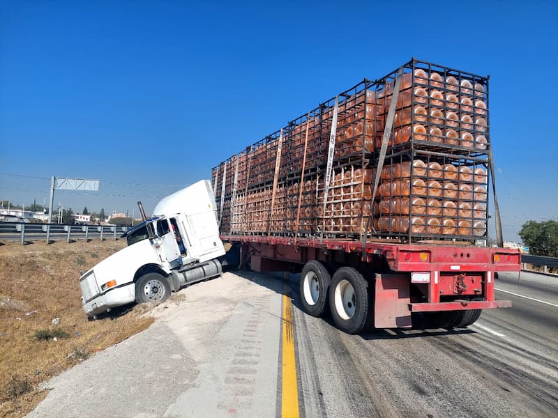 Este lunes un tráiler que transportaba garrafones de agua salió del camino en la autopista México Querétaro para evitar un accidente mayor y con ello daños materiales o pérdidas humanas, quedando atrapado en el camellón.