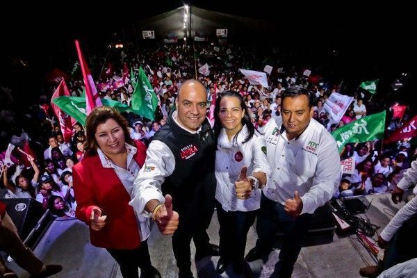 La gira de cierres de campaña comenzó en la comunidad de Boyé, en el municipio de Cadereyta. Ahí, ante más de 7 mil personas, el candidato priísta estableció 18 compromisos, entre ellos el mejoramiento de la imagen urbana, rehabilitación de fachadas y monumentos históricos en la cabecera municipal; un panteón municipal en la comunidad de Palmar y la construcción de una biblioteca mixta en dicha localidad.
