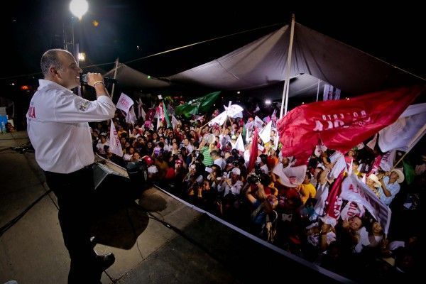 Acompañado de su esposa Lucy, candidatos locales y federales, en un mitin en la plaza principal, Roberto Loyola subrayó la importancia de focalizar esfuerzos para generar equidad de desarrollo en las comunidades rurales y reducir la brecha de desigualdad.