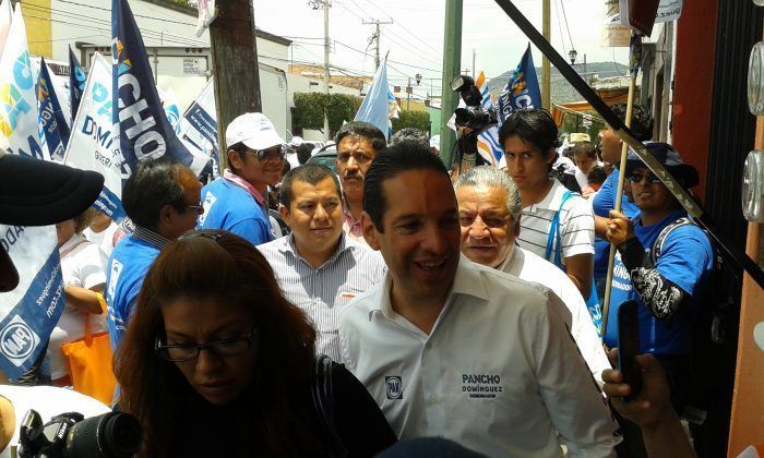 Alrededor de 500 panistas, provenientes de diversas partes del estado, se dieron cita en las calles del centro del municipio de San Juan del Río, esto con la finalidad de apoyar al candidato a la gubernatura por el Partido Acción Nacional (PAN) Francisco Domínguez, quien recorrió la avenida Juárez para presentar sus propuestas tanto al sector comercio como a la ciudadanía en general.