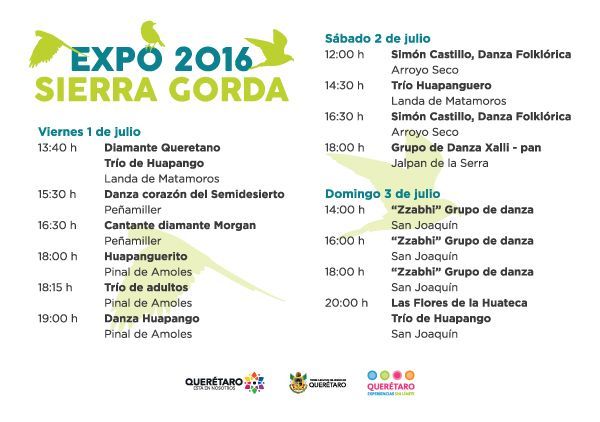 Expo Sierra Gorda, presentará también interpretaciones de danza folclórica y huapango; estarán a la venta las bebidas tradicionales de la zona y se ofrecerán maridajes con deliciosos platillos típicos.