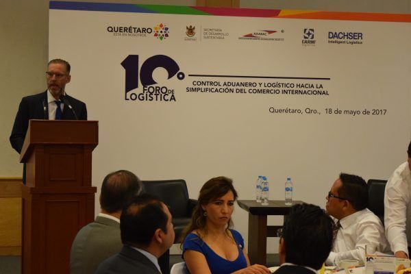 Querétaro, Qro. 19 Mayo 2017.- El secretario de Desarrollo Sustentable, Marco Antonio Del Prete Tercero, inauguró el 10° Foro Logístico, el cual tuvo como tema central el “Control aduanero y logístico hacia la simplificación del comercio internacional”, con este evento se busca la actualización, promoción de servicios y desarrollo de alianzas estratégicas por parte de los actores de la cadena de logística de comercio exterior.