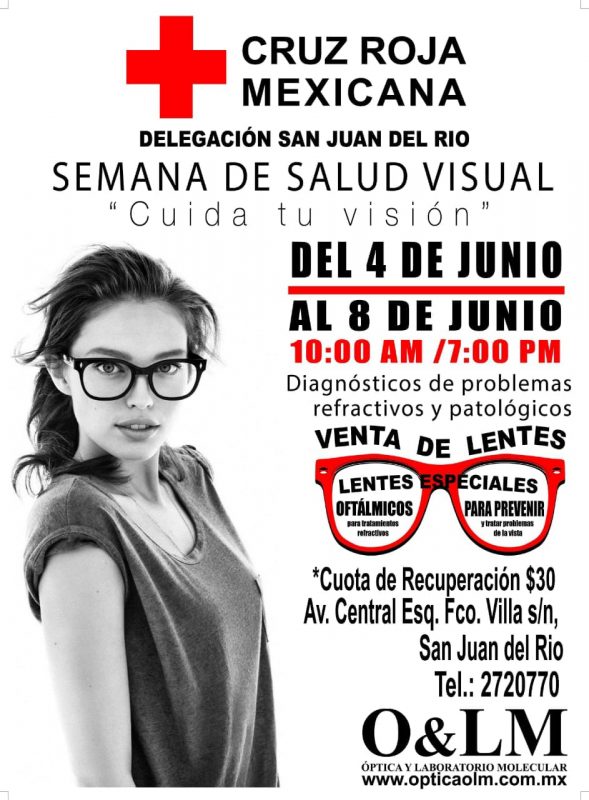 San Juan del Río, Qro. 28 mayo 2018.- La Cruz Roja delegación San Juan del Río hace una atenta invitación a todos los sanjuanenses para que participen en la “Semana de Salud Visual”, a realizarse del 04 al 08 de junio de este año en esta ciudad.