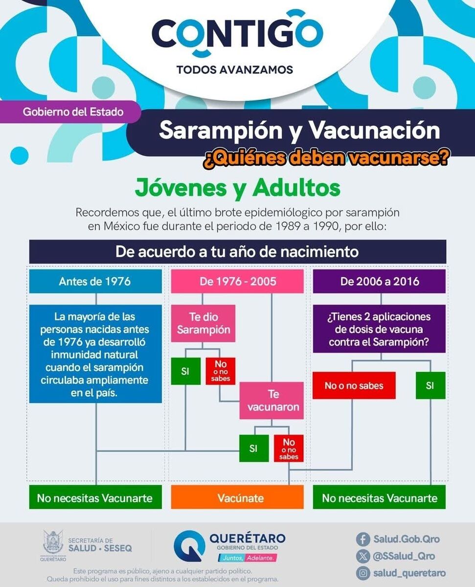 Santiago de Querétaro, Qro., 12 febrero 2026.- Con el lema “Contigo Todos Avanzamos”, el Gobierno del Estado, a través de la Secretaría de Salud, difundió los lineamientos para prevenir el sarampión, enfatizando que la vacunación es la herramienta más efectiva para evitar brotes.