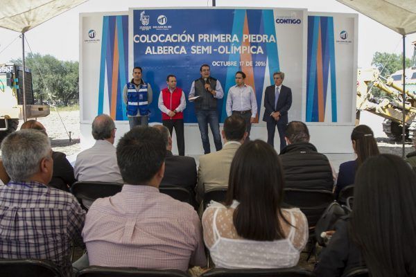 Al hablar del proyecto, el Secretario de Obras Públicas, destacó que esta obra será ejecutada por un constructor sanjuanense, que forma parte del Colegio de Ingenieros: “se hizo un gran estudio para analizar las normativas que deben regir a una obra de tal magnitud (…) la alberca que se va a construir aquí es con una inversión de Proyectos de Desarrollo Regional 2016, con un recurso de 29 millones de pesos, la cual estará equipada con calentadores y filtros adecuados, con baños y vestidores para hombres y mujeres; una oficina, un servicio médico, gradas, subestación eléctrica, estacionamiento y luminarias.