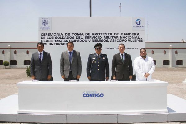 San Juan del Río, Qro., 06 abril 2016.- Al acudir a la Toma de Protesta de los 225 soldados del Servicio Militar Nacional Clase 1997, Anticipados, Remisos y Mujeres Voluntarias, donde también se hizo un homenaje con motivo del 154 Aniversario de la Batalla de Puebla, el Alcalde Memo Vega aseguró que estas fechas nos permiten reflexionar acerca del compromiso que tenemos con nuestro país y con nuestra comunidad.