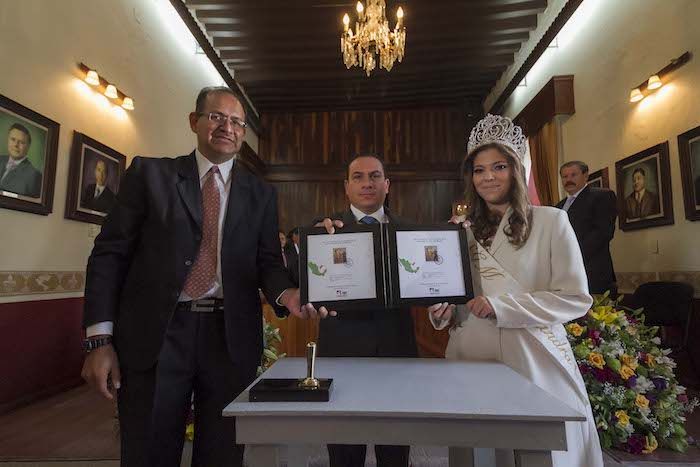 En la misma sesión, el Gerente Estatal de Correos de México en Querétaro, Víctor Hugo Aguilar Colín, y la Reina de la Feria San Juan del Río 2018, Alejandra I, acompañaron al Presidente Municipal en la cancelación del sello postal conmemorativo al 487 aniversario de fundación del municipio, así como por su integración a la Asociación Nacional de Ciudades Mexicanas de Patrimonio Mundial y su nombramiento como Patrimonio Mundial por la UNESCO, como parte del itinerario del Camino Real de Tierra Adentro.