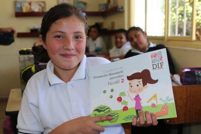 San Juan del Río, Qro. 15 Marzo 2018.- El Sistema Municipal para el Desarrollo Integral de la Familia en San Juan del Río, que encabeza la Sra. Male Ruiz, continúa trabajando la “Campaña Educativa de Orientación Alimentaria en Centros Escolares” emprendida en el pasado mes de septiembre para el ciclo escolar 2017-2018 en coordinación con el Sistema Estatal DIF, a través de Programas Alimentarios, la cual busca formar en los niños y niñas de educación básica una visión crítica de su alimentación, fomentando hábitos saludables y así evitar complicaciones derivadas de problemas de salud como la obesidad y el sobrepeso.