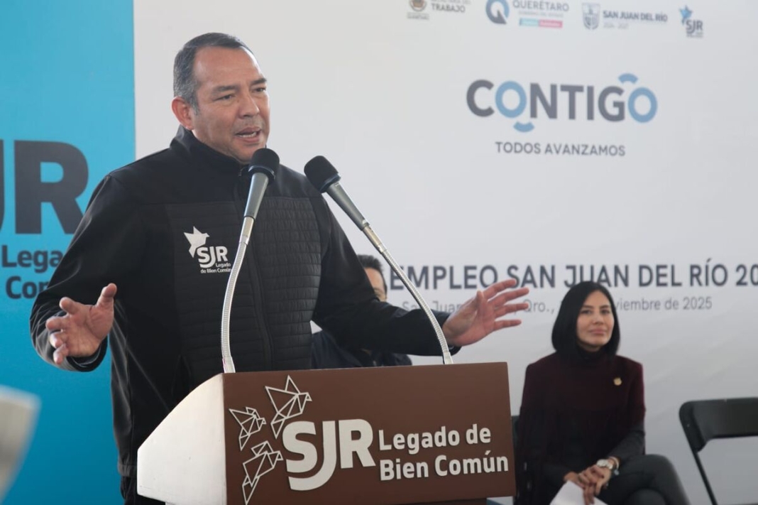 SAN JUAN DEL RÍO, QRO., 13 noviembre 2025.- Durante su mensaje de bienvenida en la Expo Empleo Maquio, el presidente municipal Roberto Cabrera Valencia definió la política pública central de su administración y del gobierno estatal en materia de desarrollo social.