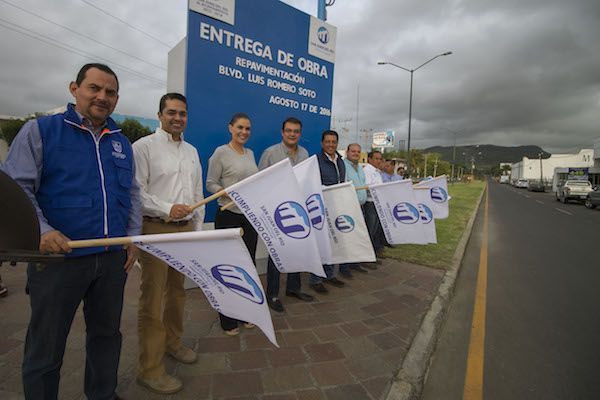 San Juan del Río, Qro. 17 agosto 2016.- El Presidente Municipal de San Juan del Río, Guillermo Vega Guerrero, realizó el banderazo de entrega de las obras de repavimentación del Boulevard y de la Calle Luis Romero Soto, acciones que mejoran los traslados de cientos de sanjuanenses que transitan por la zona.
