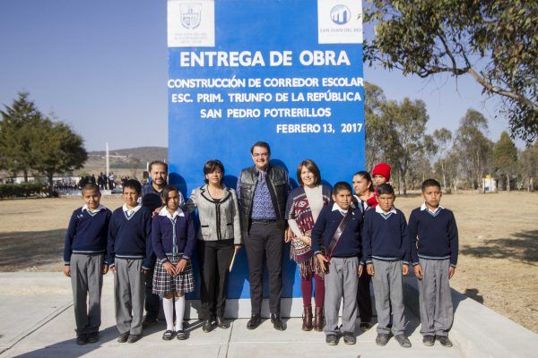 San Juan del Río, Qro. 14 Febrero 2017.- Cumpliendo su compromiso de apoyar a la educación como una manera de fomentar el progreso en las comunidades, el Presidente Municipal de San Juan del Río, Memo Vega, entregó las obras de comedor escolar y andador, en beneficio de los alumnos de la Primaria “Triunfo de la República”, de la comunidad San Pedro Potrerillos.