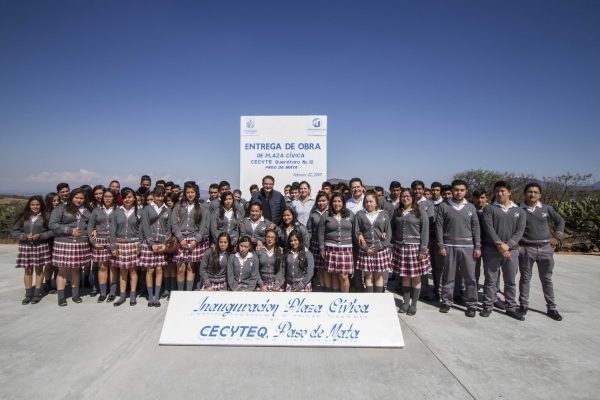 San Juan del Río, Qro. 3 Febrero 2017.- Tal y como se había comprometido en su visita al CECYTE de la comunidad de Paso de Mata, ante presencia del Gobernador, el Presidente Municipal de San Juan del Río, Memo Vega, entregó la obra de Plaza Cívica, en beneficio de los alumnos de este plantel; además de que les anunció que este año, su Gobierno construirá su arcotecho como obra complementaria a la que hoy entregó.