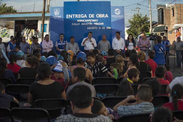 San Juan del Río, Qro. 16 agosto 2016.- “Lo que la gente quiere es que sus autoridades no estén encerradas en su oficina, sino que estén regresando a las colonias, barrios y comunidades, a dialogar para ver qué se ofrece y a ver cómo le vamos a hacer para resolver sus inquietudes juntos”, aseguró el Presidente Municipal de San Juan del Río, Guillermo Vega Guerrero al entregar la obra de rehabilitación en la calle Agustín Melgar en la Colonia Juárez.