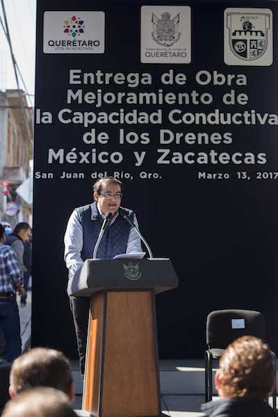 Por su parte, el Gobernador Pancho Domínguez, dijo que hoy cumple con otro de los compromisos para la zona oriente de San Juan del Río, porque –aseguró- que la tarea del Gobierno no solo es venir cuando hay desastre a entregar cobijas, colchonetas, despensas y enseres domésticos. La obligación del Gobierno es hacer obras como estas para que las familias dejen de preocuparse cada que les llovía.