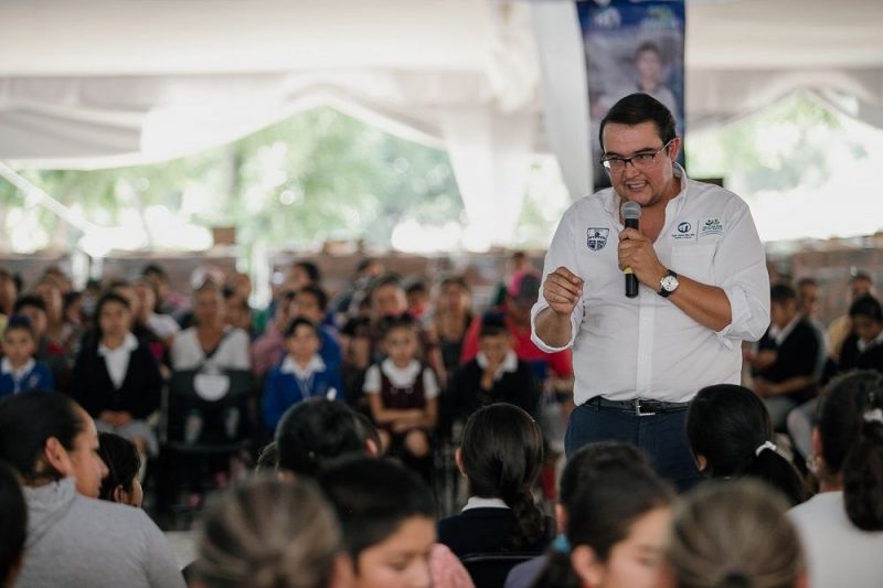 San Juan del Río.- Al encabezar un evento más de entrega del programa de Becas Municipales, en beneficio de 9 mil estudiantes, el Presidente Municipal, Memo Vega, invitó a las familias beneficiadas a seguir aprovechando las ventajas que ofrece este programa para impulsar la educación de los niños y jóvenes y apoyar a la economía de sus familias.