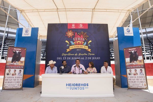 Acompañado de su esposa, la Sra. Male Ruiz; el Coordinador de la Feria, Itzcalli Rubio Medina; del empresario taurino Juan Arturo “El Pollo” Torres Landa, así como del ganadero, propietario de “La Venta del Refugio”, José Luis Gómez Martínez, el Alcalde Vega indicó que “San Juan del Río se ha caracterizado por su afición taurina”, y por ello se llevará a cabo celebración de una corrida con grandes figuras del toreo, como parte de los festejos del 486 aniversario de la fundación de la ciudad.