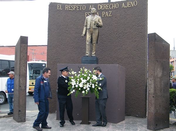 Posteriormente, la fila de honor, se trasladó al monumento de Don Benito Juárez para la colocación de una ofrenda floral y montar una guardia de honor por espacio de un minuto.