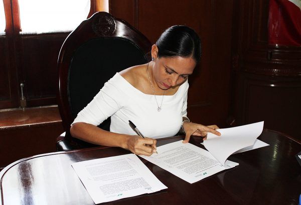 La Presidenta municipal de Pinal de Amoles, Gloria Rendón García destacó que este convenio de colaboración busca que los jóvenes mejoren su calidad laboral a través de la realización de sus estadías profesionales en las dependencias de la administración que encabeza.