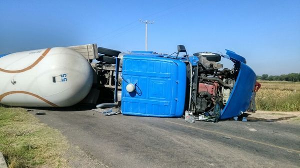 San Juan del Río, Qro., noviembre 03 del 2015.- Se registró aparatoso accidente en la carretera estatal 122, (La Estancia-La Llave), en el kilómetro 7+500 al registrarse la volcadura de una pipa cargada con gas LP, la cual quedó bloqueando el tránsito de la carretera en ambos sentidos, haciendo necesaria la presencia de los Bomberos Voluntarios de San Juan del Río.
